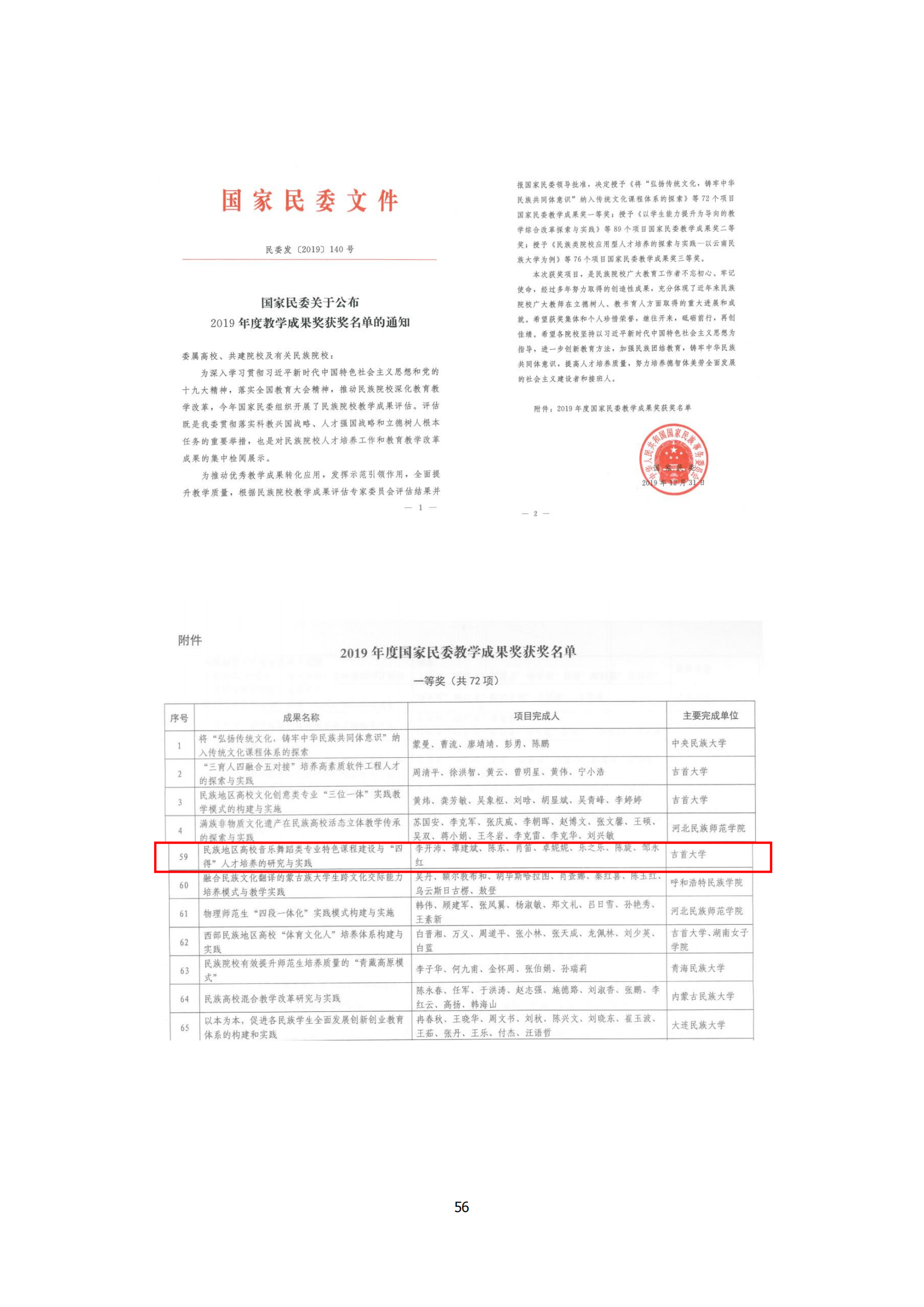 民族地区高校音乐舞蹈类专业“合作一协同一 融合”实践育人机制的构建与实践(特等奖) |
