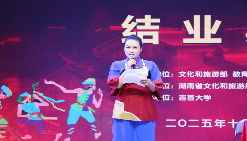 湘西州文化旅游广电局四级调研员王伟、湘西州文化旅游广电局非遗科科长粟吟君、吉首大学音乐舞蹈学院党委书记郑昭信、音乐舞蹈学院副院长乐之乐出席结业典礼并观看了汇报展演,结业典礼由乐之乐教授主持。