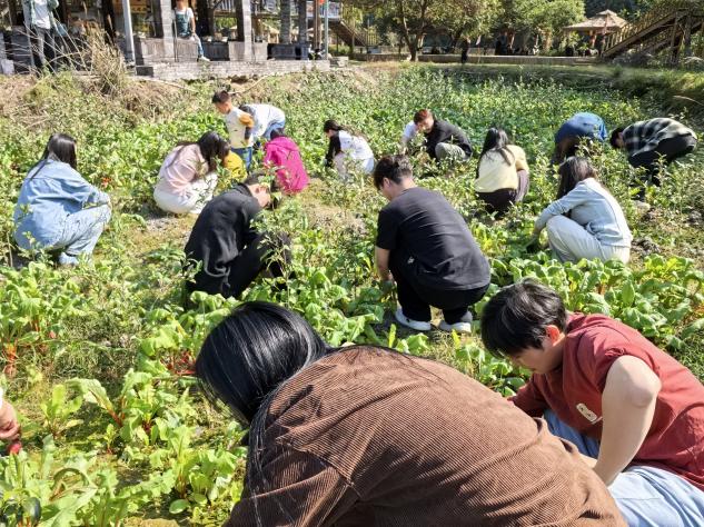 为响应吉首大学“四大行动计划”,将趣味竞技与公益助农劳动深度结合,引导学生干部走出校园、深入乡村,切实参与农业生产实践,2025年11月16日,吉首大学音乐舞蹈学院研究生会的学子们在学院党委书记和分管院长的带领下走出课堂,赴一场与劳动的亲密之约。与同学们并肩投身实践,在采秋茶与拔萝卜的沉浸式体验中,用双手感知耕耘的力量,用汗水诠释青春的担当,让劳动教育在田间地头落地生根。