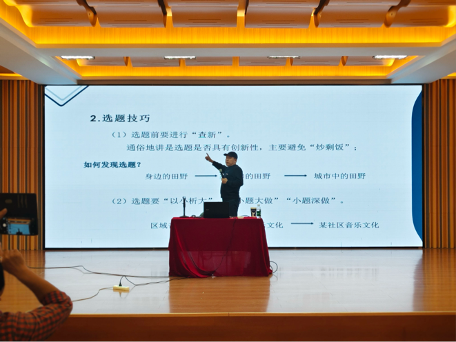 2025年10月28日,吉首大学音乐舞蹈学院迎来学术高光时刻——湖南师范大学赵书峰教授于当日带来两场讲座,内容从非遗乐舞传承延伸至社科基金申报,为师生带来丰富的学术滋养。