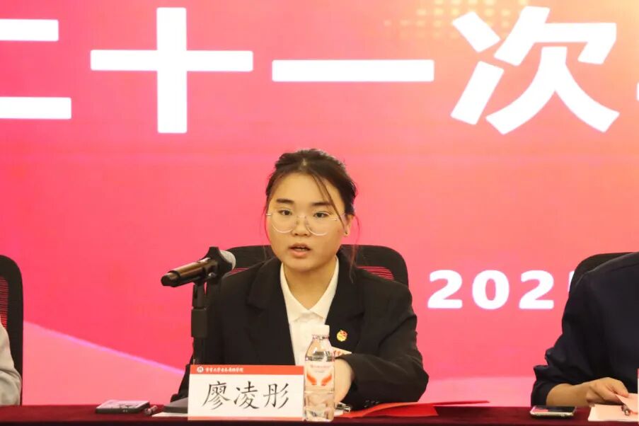 校学生会主席团成员廖凌彤同学宣读《吉首大学学生会关于同意召开吉首大学音乐舞蹈学院第二十一次学生代表大会的批复》。