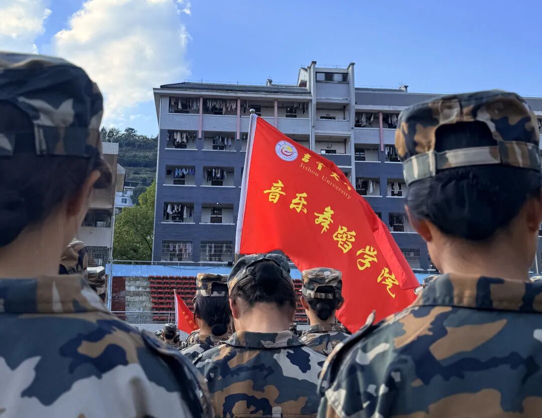 迷彩的硬朗裹着我们的柔软底气,红旗上“音乐舞蹈学院”几个字,是踮起脚尖时绷直的脚背,是开口唱时震响的胸腔。旁人眼里的裙摆与音阶,是我们往队列里一站,就能让整齐的步伐里藏着小跳音的骄傲。