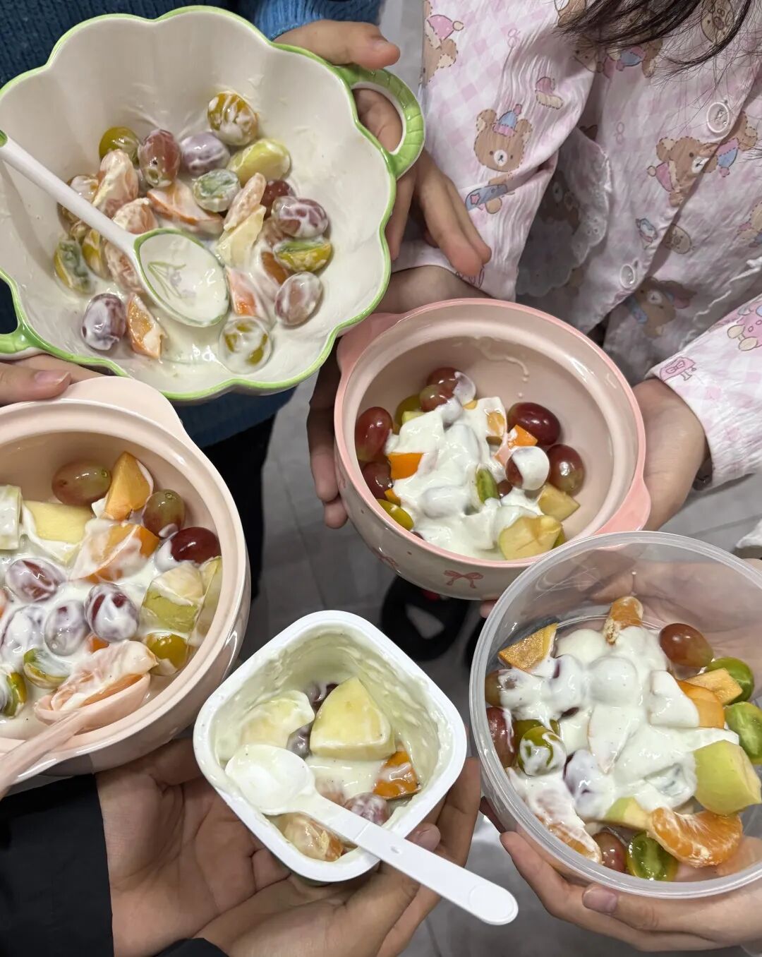 宿舍室友也超合群,我们每天一起去食堂吃饭,经常一起谈心,甚至还有宿舍长做的水果捞,一点都不孤单。