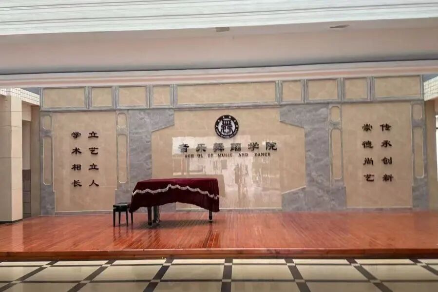 当我第一次踏入音乐舞蹈学院的大厅,“崇德尚艺,传承创新”的院训,“学术相长,立艺立人”的办学理念映入我的眼帘,那一刻,我清晰地意识到,这里将是我舞蹈梦想启航的地方。大厅里那架铺着红绒布的钢琴,仿佛在无声地诉说着艺术的优雅与庄重,我仿佛已经能想象到未来在琴音伴奏下,于练功房挥洒汗水、在舞台绽放光彩的模样。